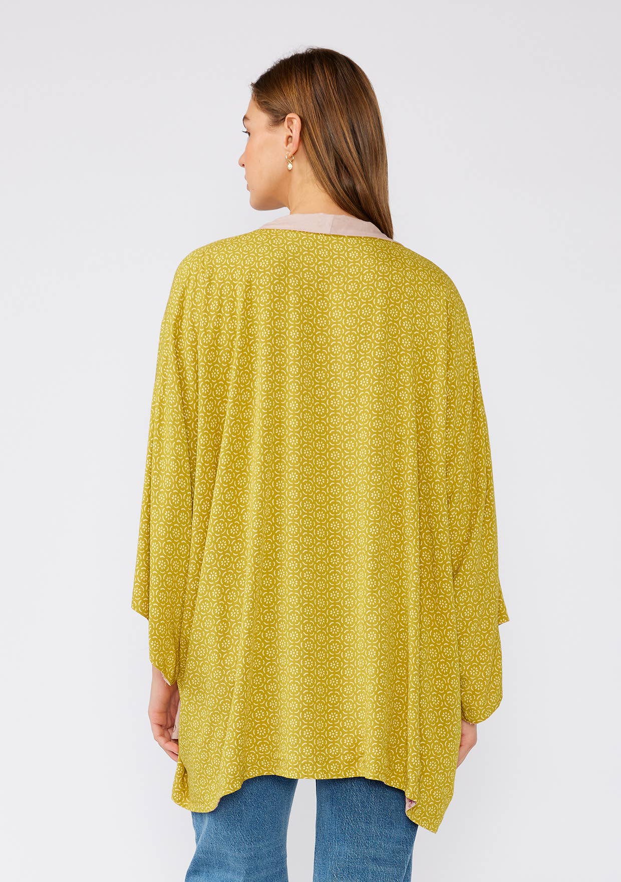 A spring must have! This reversible floral kimono features an open front and wide sleeves. The perfect casual cover-up to pair with denim or swim.